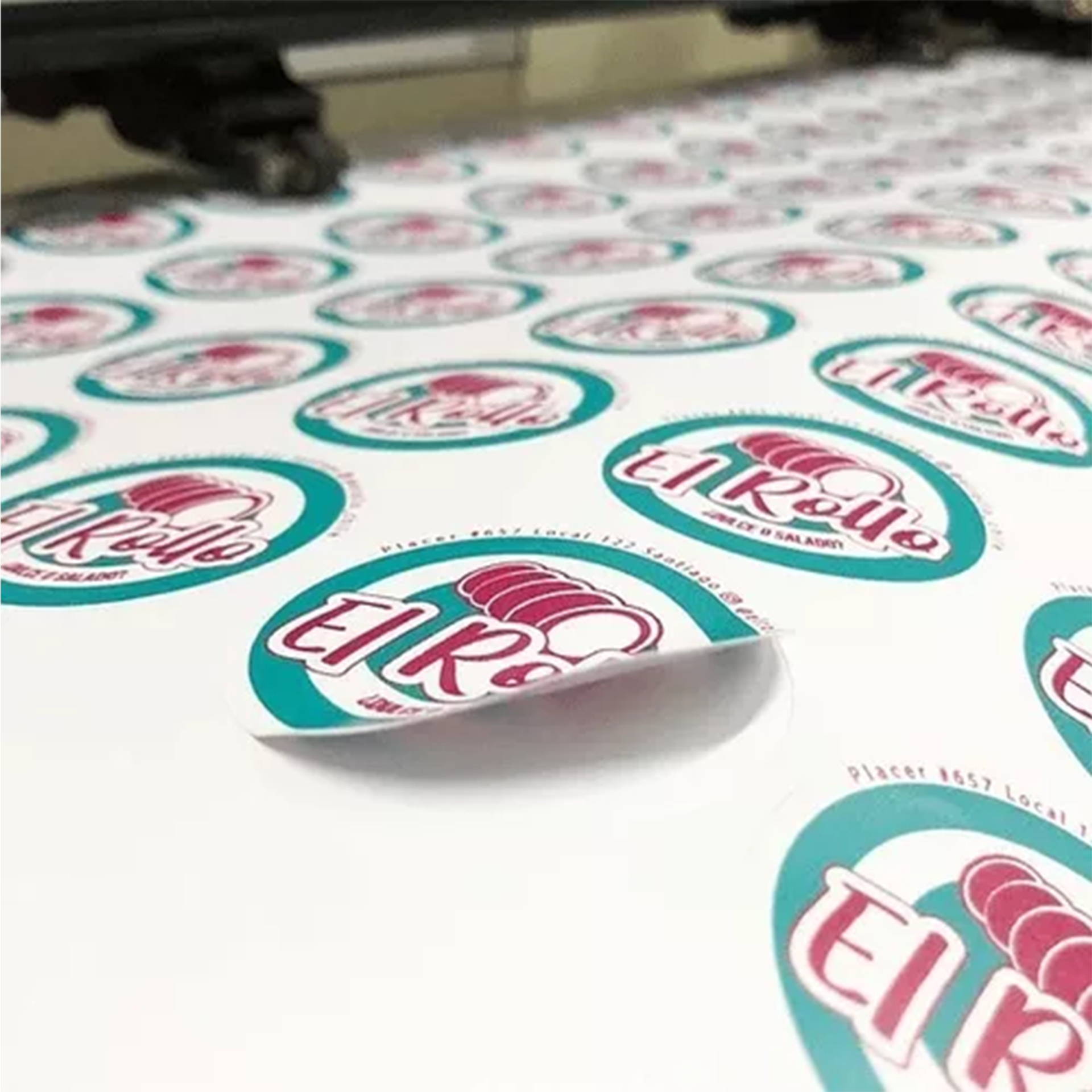 Planillas de Etiquetas vinil blanco personalizadas con tu diseño listas para desprender y pegar. Impresas en el vinil adhesivo de alta calidad tintas ecosolventes con resistencia a congelación o frio.
